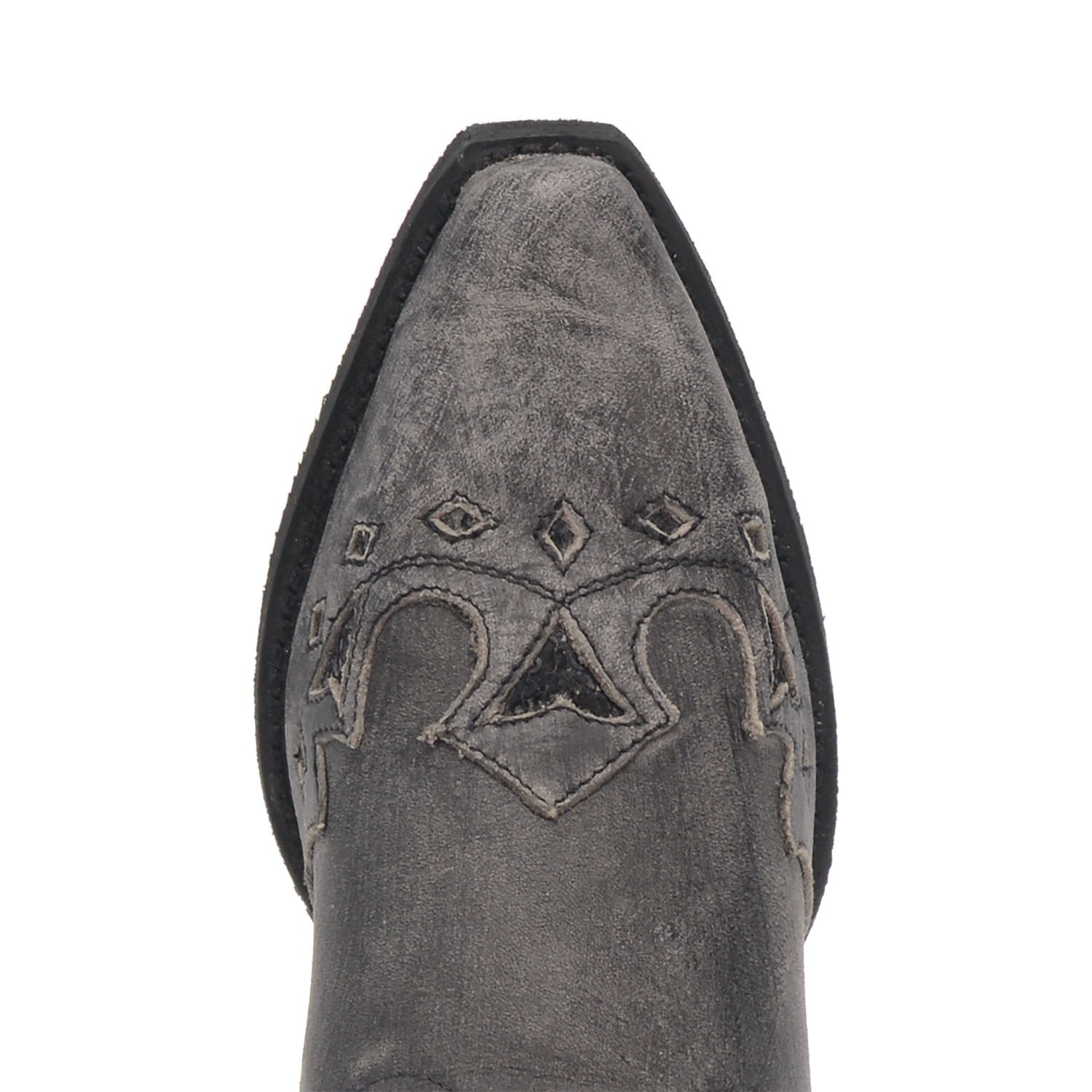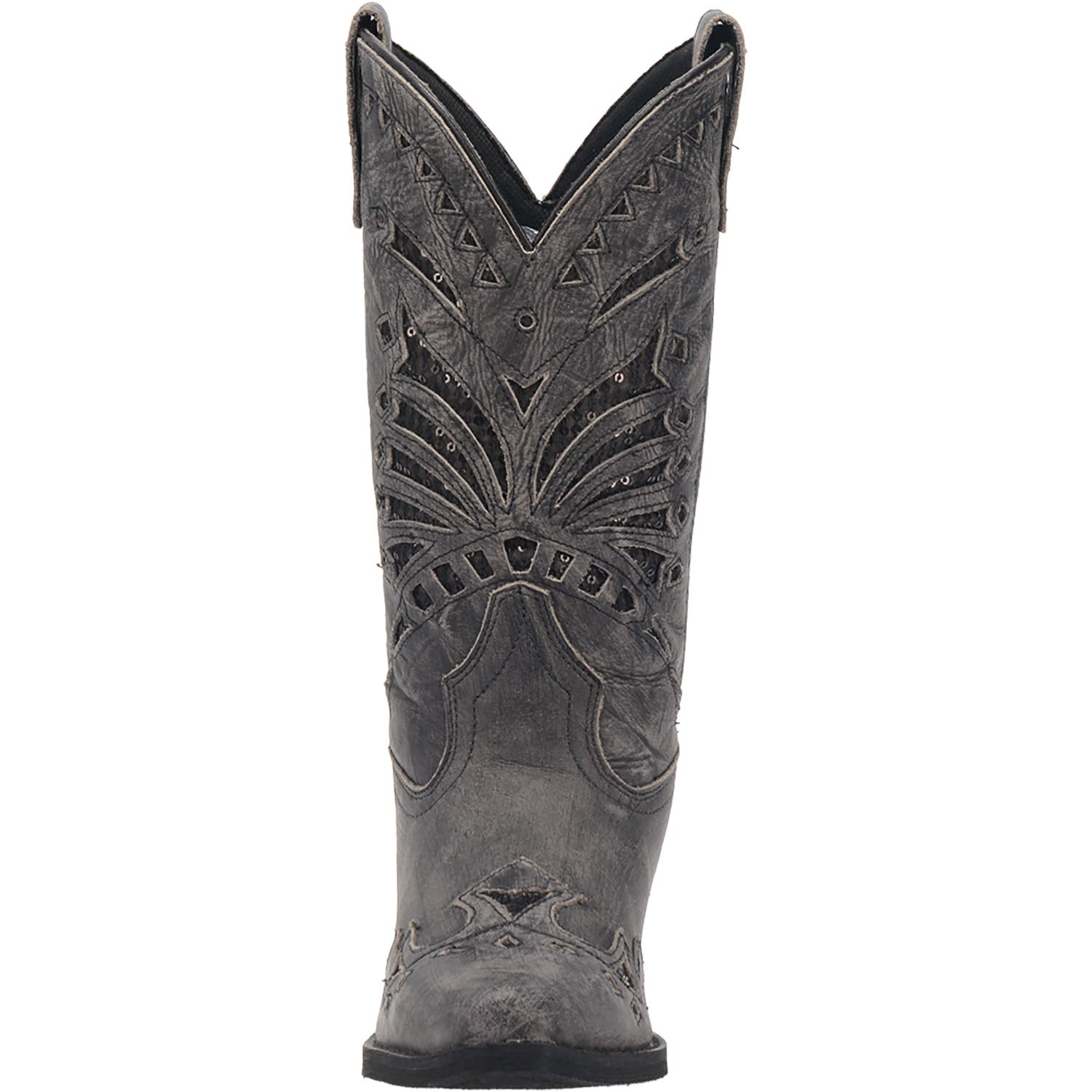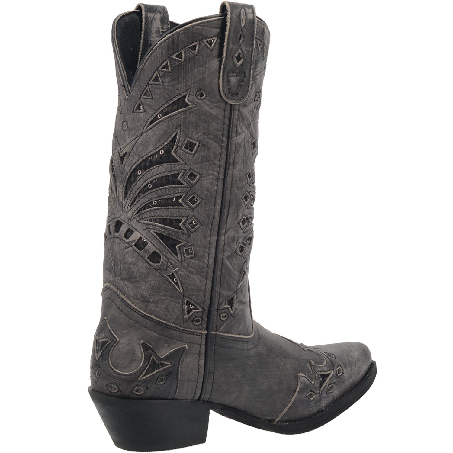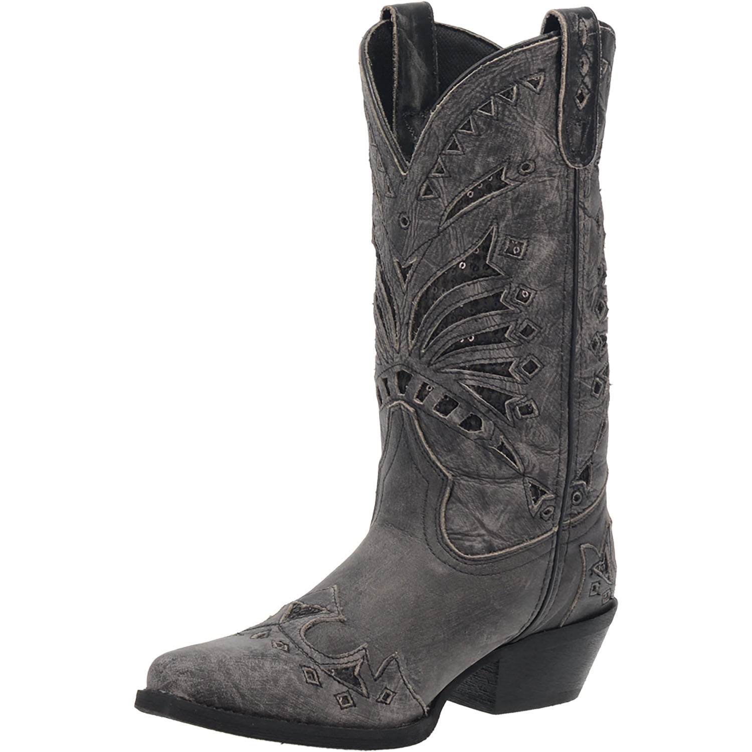 • Leather These cowboy boots designed by Laredo feature many great details including their leather materials, 11in shaft height, and glitter inlay. These women cowboy boots will treat you right.