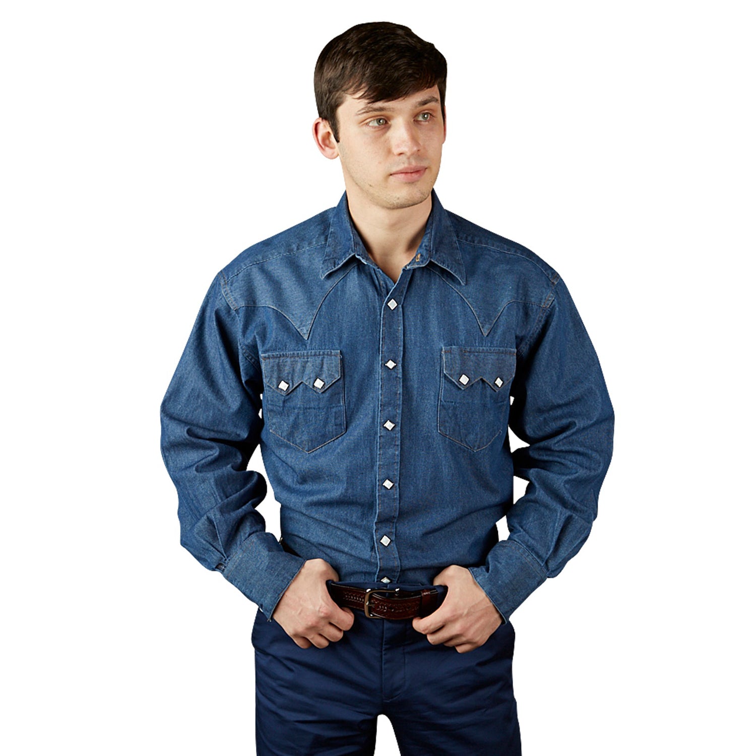 Rockmount Mens Blue 100% Cotton Stonewashed Denim Western L/S Shirt – The Western Company