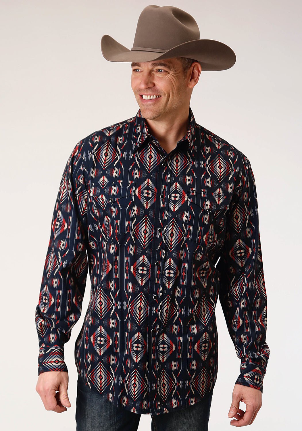 Roper Mens Black 100% Cotton Blanket Stripe L/S Shirt M