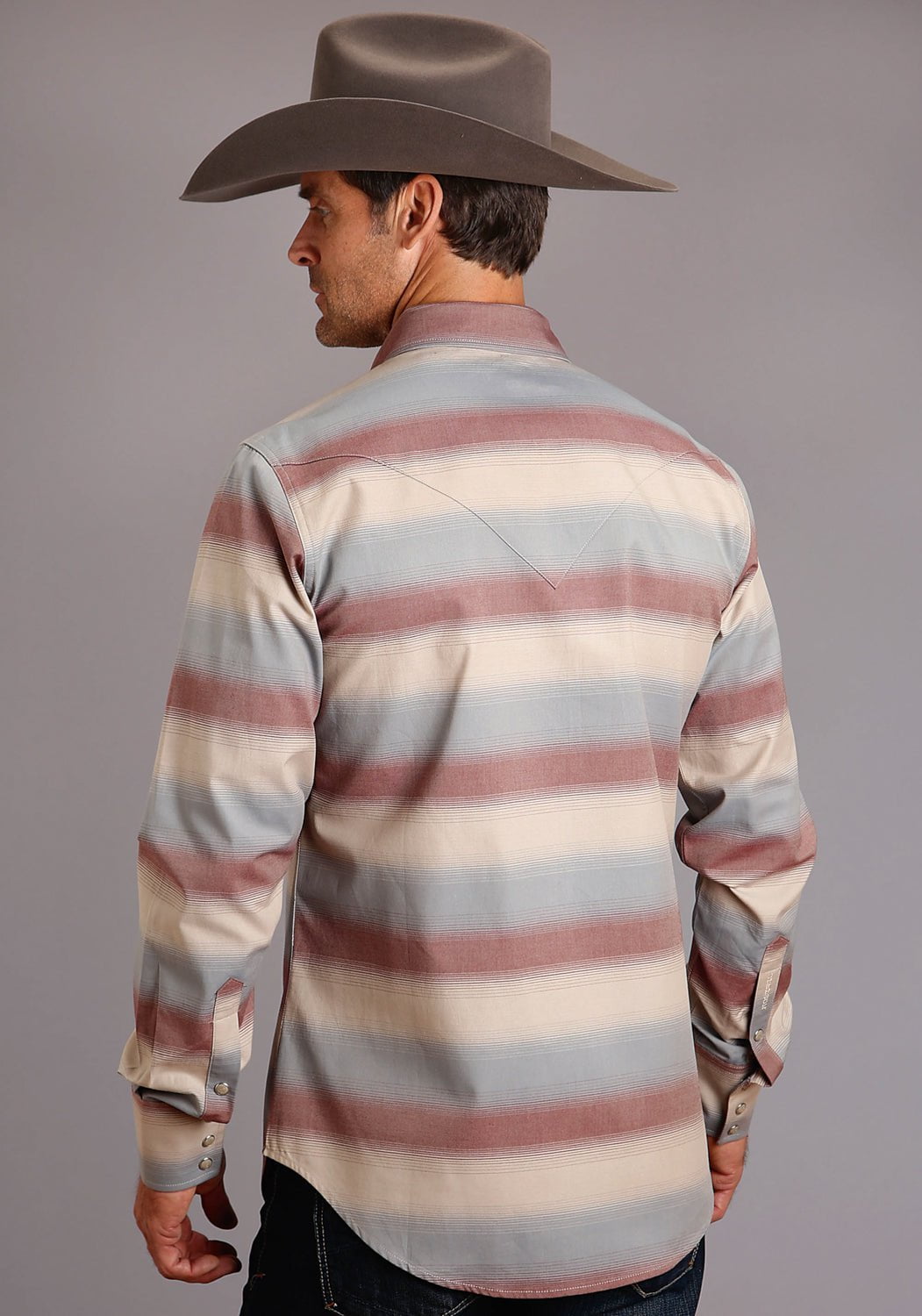 Stetson Mens Wine 100% Cotton Ombre Stripe L/S 2 Pkt Shirt