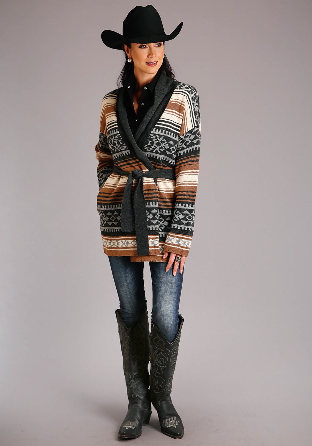 Stetson Womens Brown Serape Wool Blend Sweater Cardigan