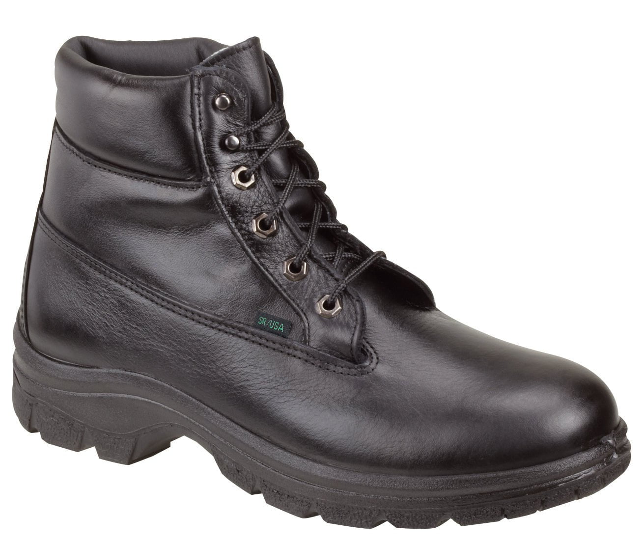 • Boulder Waterproof Leather Thorogood has been providing quality work, uniform, and fire footwear since 1892. They are a leading manufacturer in engineering footwear safety and comfort. This style is proudly manufactured in the USA by workers who are dedicated to crafting comfortable, technologically advanced safety boots and shoes. These boulder waterproof leather boots feature a direct injection construction, thinsulate ultra insulation, and removable footbed.