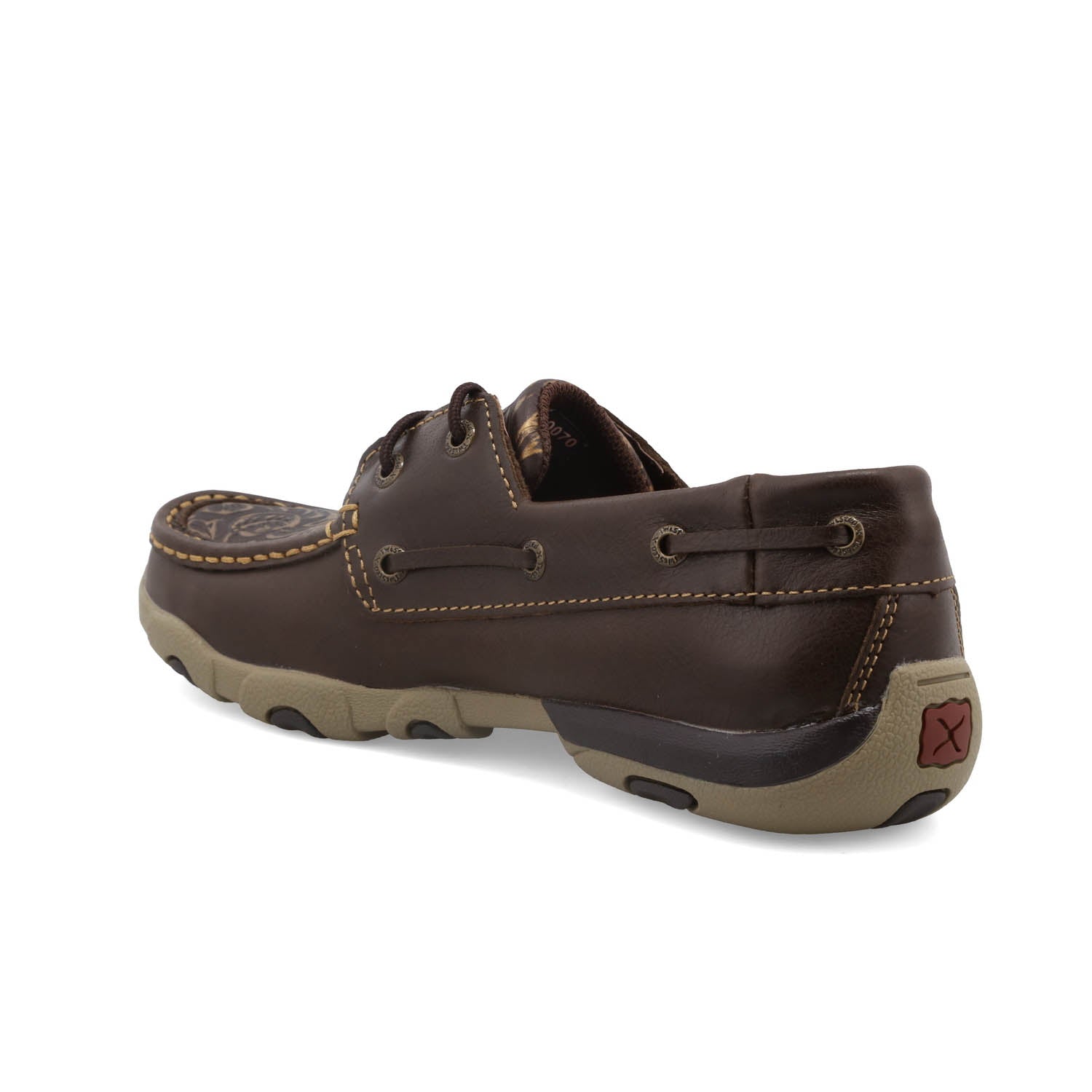 Twisted X Womens Driving Moc Flower Brown Leather Boat Shoes