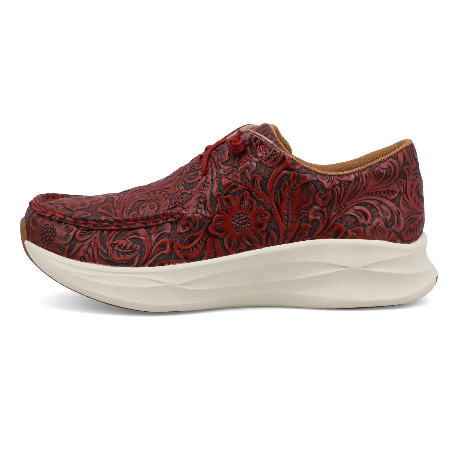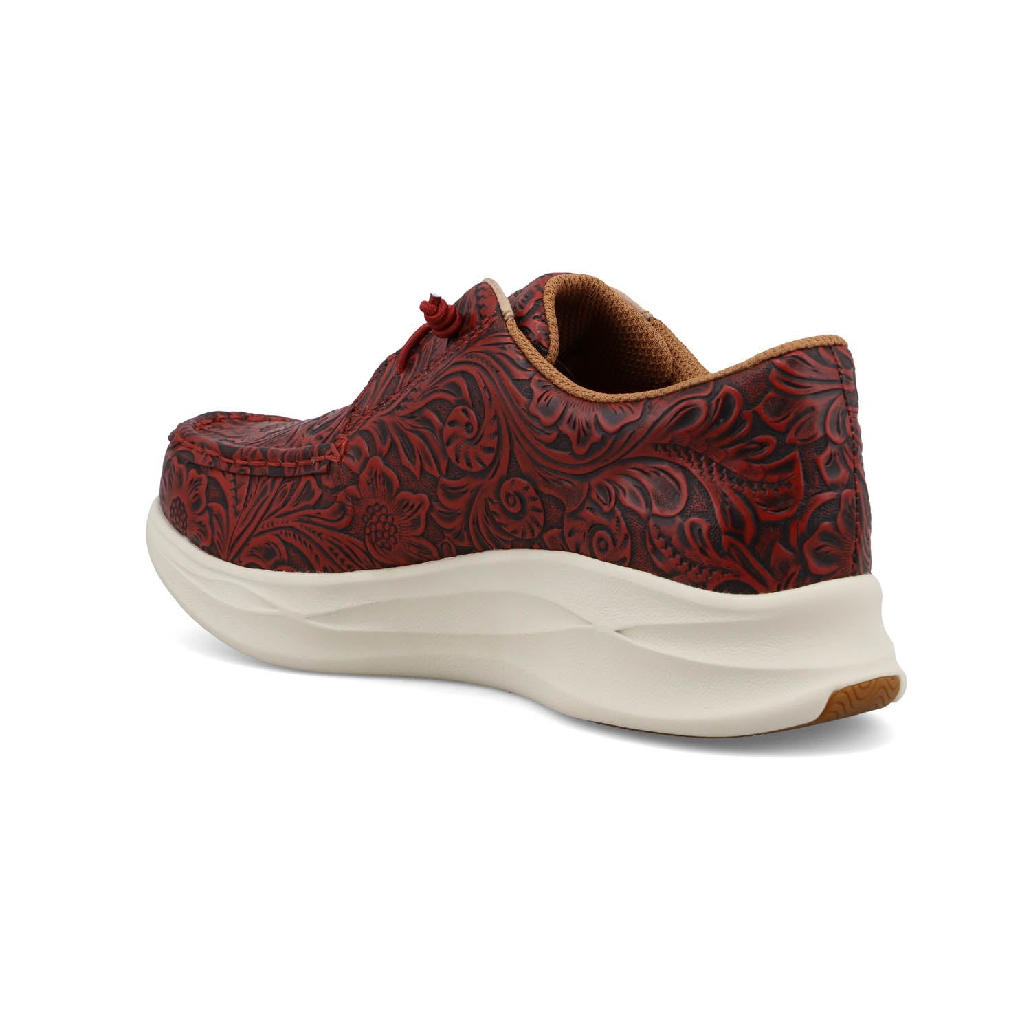 • Leather upper Always striving, never compromising. Twisted X is dedicated to making better boots and it shows. Delicate leather artistry meets casual everyday comfort. This pair of Feather X features a tooled floral design on premium leather complete with an elastic lace system allowing for easy slip-on and go. Infused with UltraLite X technology, this shoe is 20% lighter on average than similarly styled footwear, and eco-friendly materials throughout leave a lighter environmental impact. Feather X is perfect for anyone seeking easy-wearing comfort with a little western flair. These are a great athletic footwear choice.